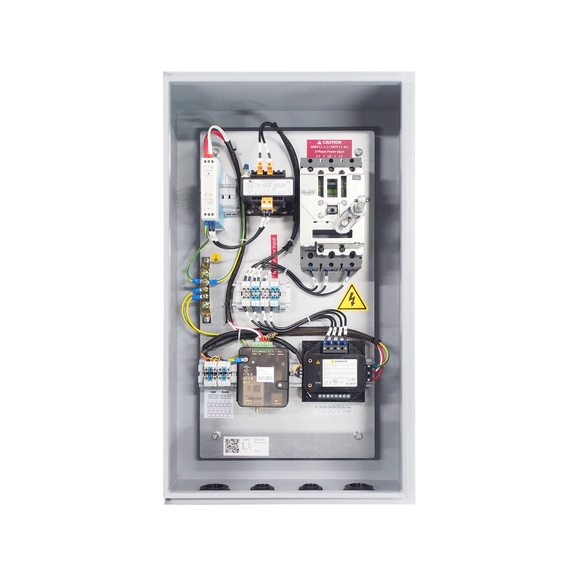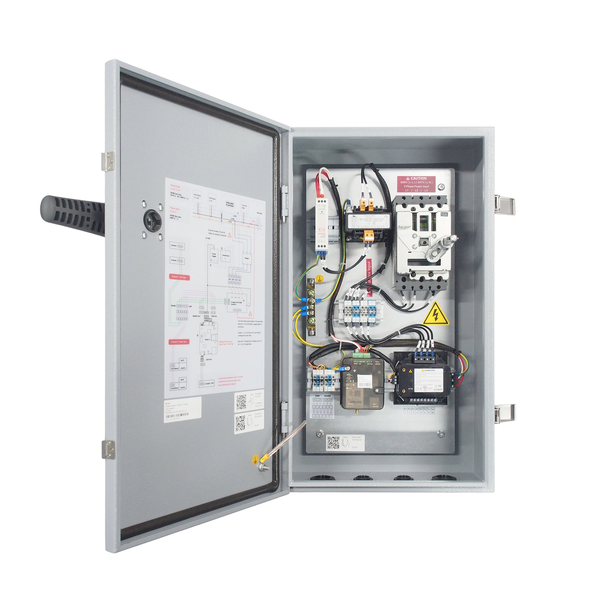 - NEMA4 metal communication box with EHX2-E gateway (4G Module+Ethernet+WiFi+BLE, without data plan), 600VAC input; UL508a-listed;